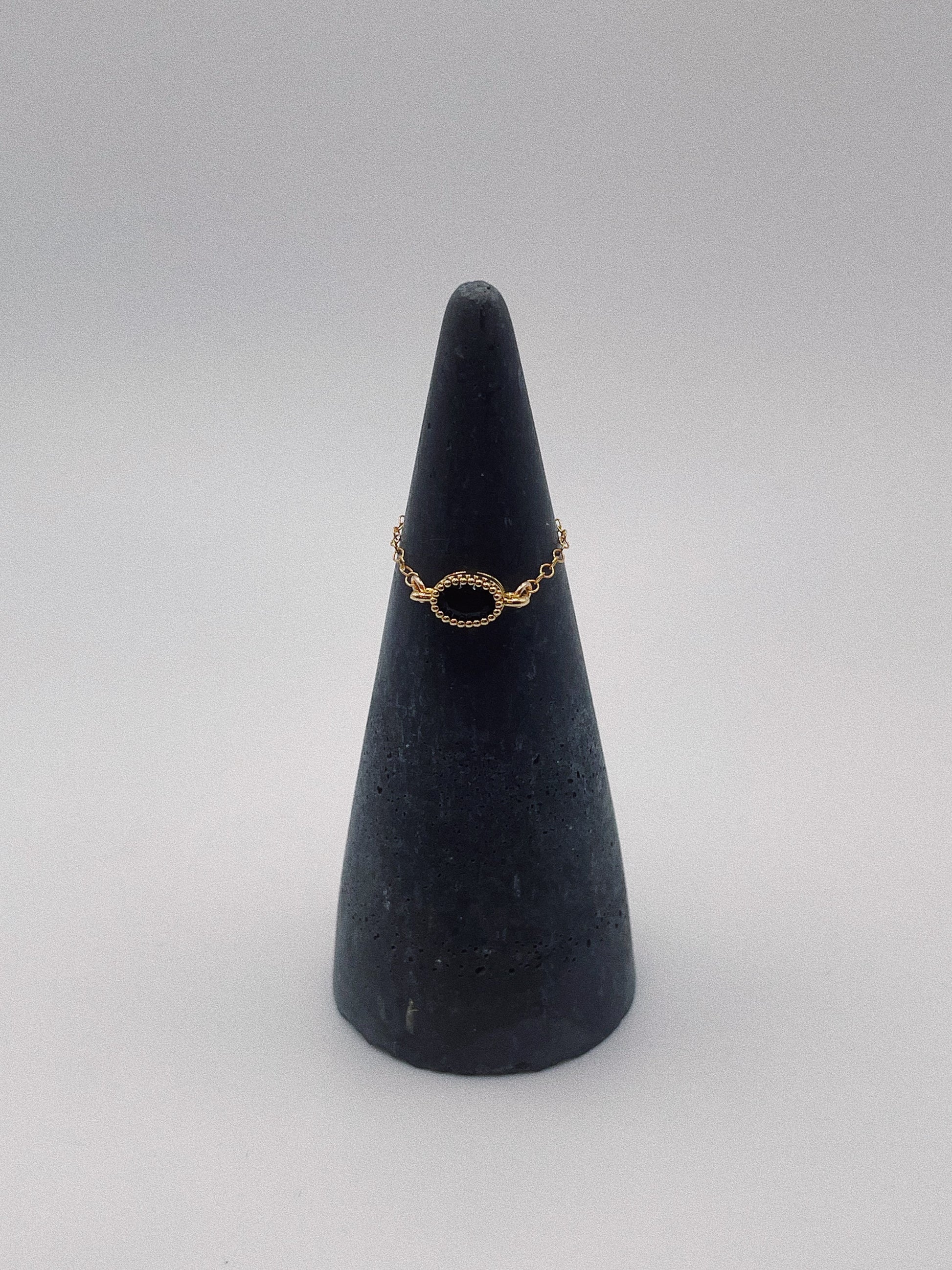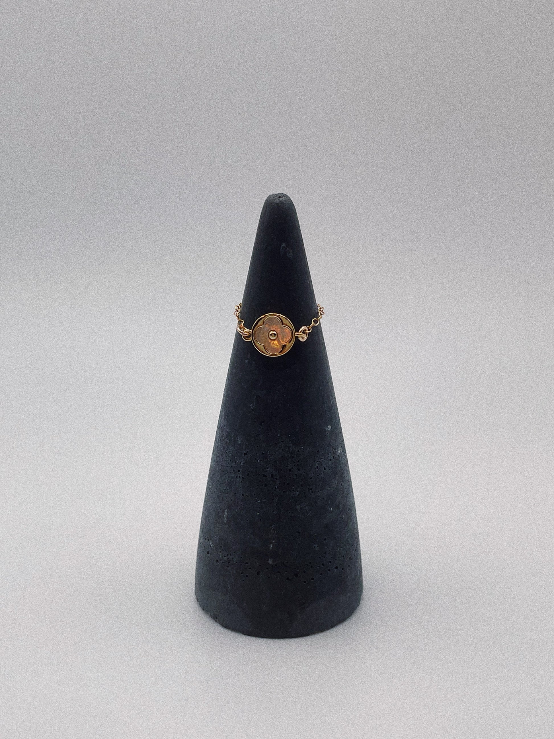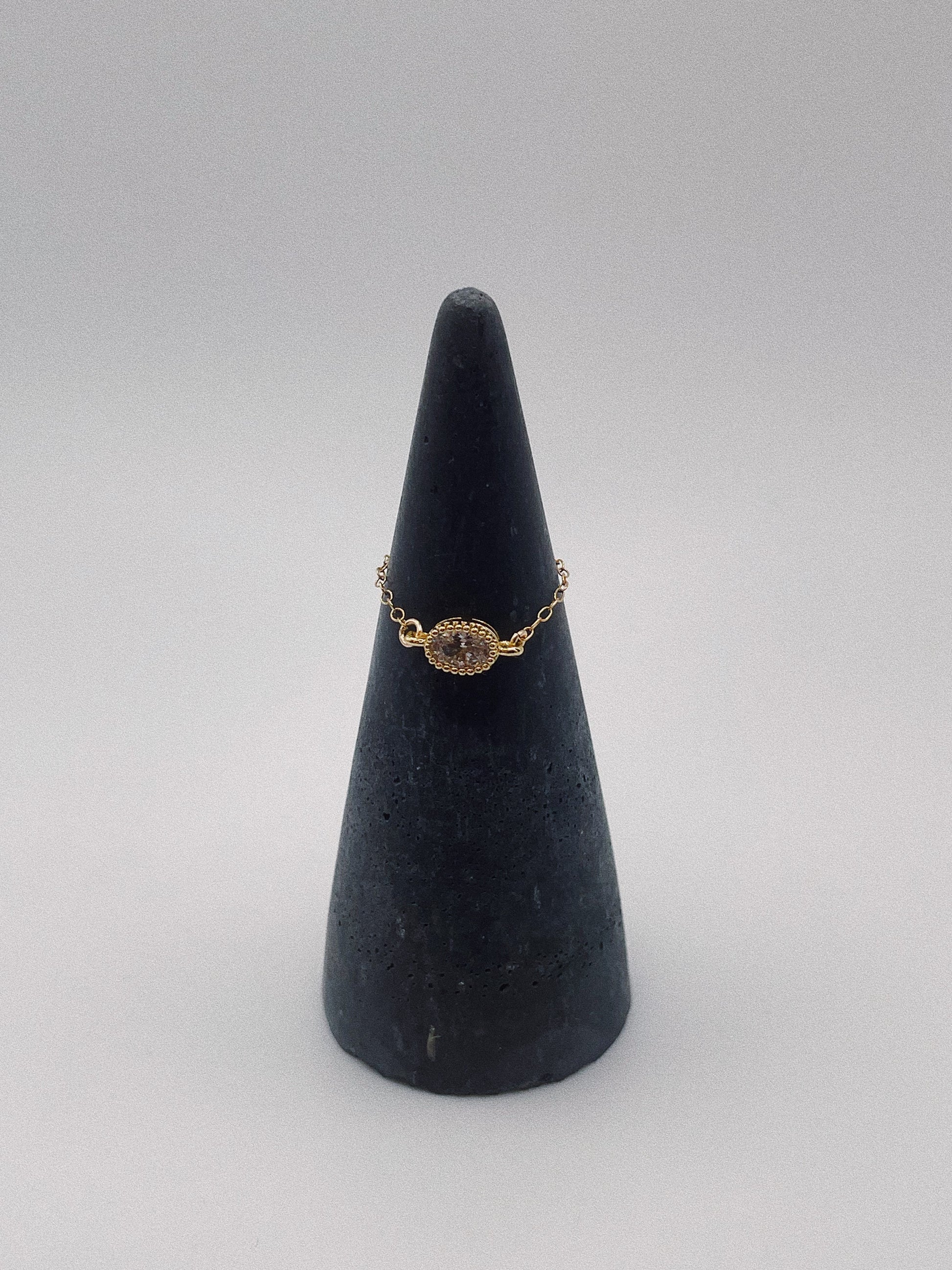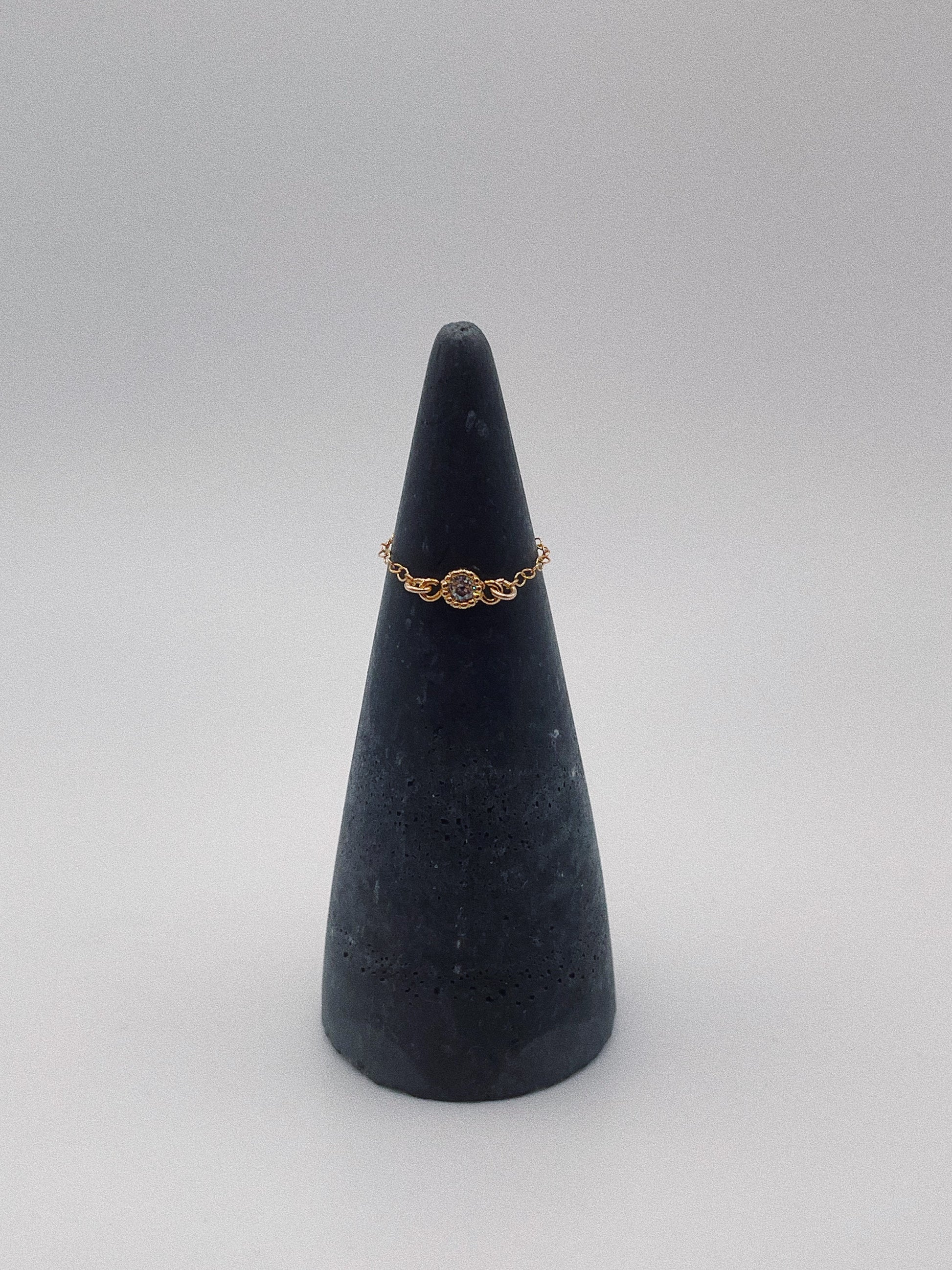 The chain is gold filled and the charm is gold plated but with good resistance (won’t turn green). Take it off before washing your hands for maximum longevity and please enter your size in the customization. For the most exact fit, you can include the measurement of your finger in mm!