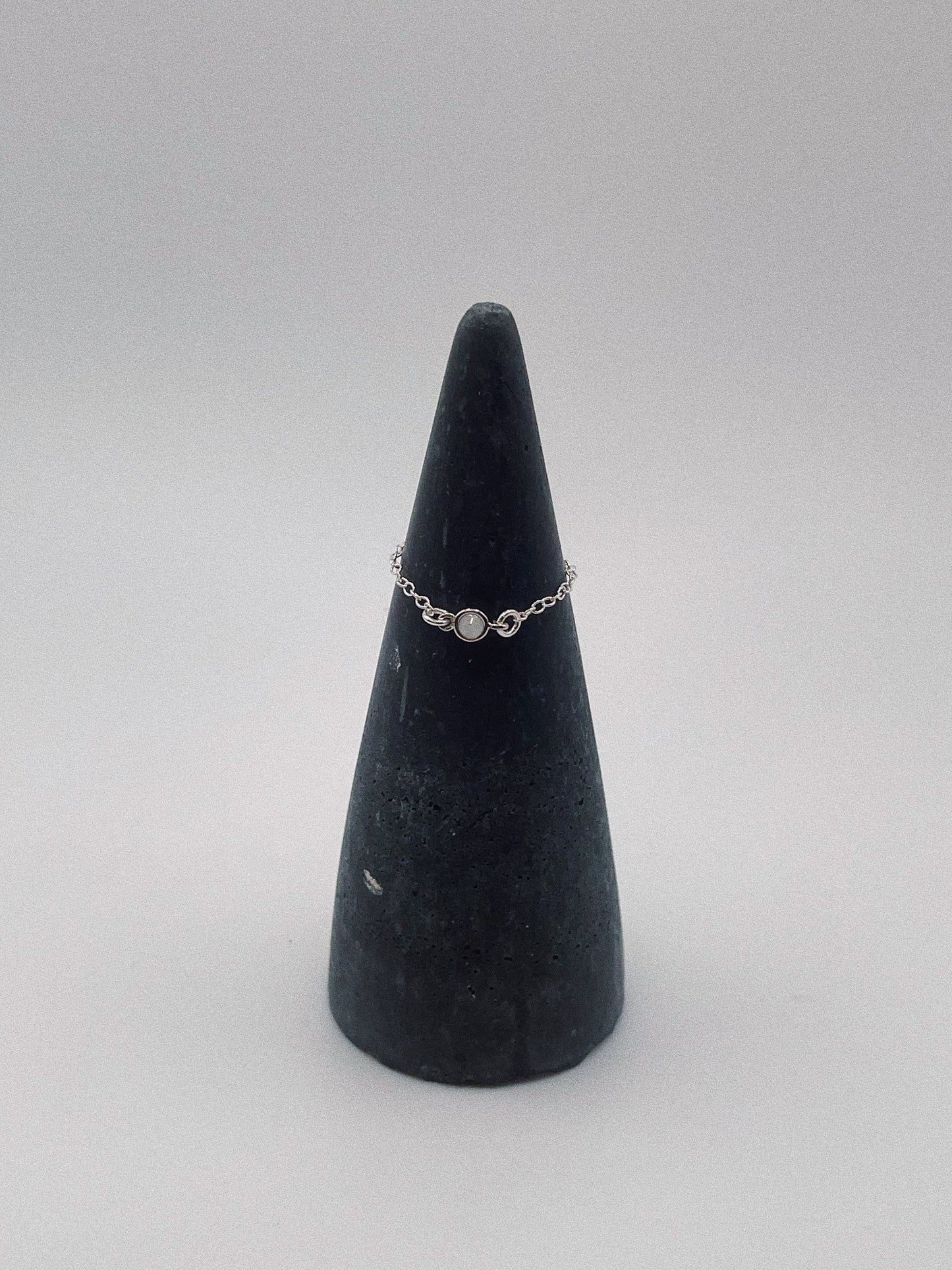The chain is sterling silver and the charm is silver plated but with good resistance (won’t turn green). Take it off before washing your hands for maximum longevity and please enter your size in the customization. For the most exact fit, you can include the measurement of your finger in mm!
